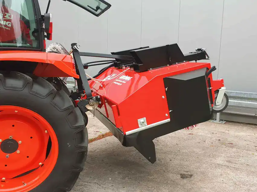 Ganz gleich, ob Sie eine Kehrmaschine für Ihren Gabelstapler, Traktoren oder Radlader benötigen – GRÜNIG Anbaukehrmaschinen lassen sich blitzschnell an unterschiedliche Trägerfahrzeuge ankoppeln.