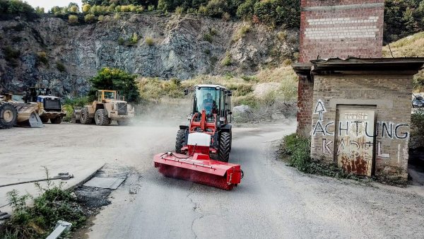 GRÜNIG Anbau-Kehrmaschinen werden in Sekundenschnelle an Ihr vorhandenes Straßenbau-Fahrzeug, wie z. B. Radlader aller Markenfabrikate, angekoppelt – ohne dass zeitaufwendige Umbauten am Trägerfahrzeug nötig wären. Im Nu ist eine GRÜNIG Kehrmaschine für den Anbau einsatzfähig, um Baustellen äußerst gründlich und effizient zu reinigen – und das selbst bei extremen Schmutzverhältnissen. Für festgefahrenen Lehm beim Straßenbau besteht zum Beispiel die Möglichkeit, die Maschine mit einer speziellen Schmutzkratzleiste auszurüsten.