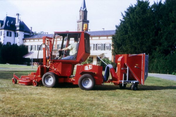 welche sich sekundenschnell ankoppeln lassen. Im Nu können so vorhandene Trägerfahrzeuge für die Grundstückspflege in ihren Stillstandszeiten zur Kehrmaschine, zum Rasenmäher, zum Winterdienstgerät oder zum Geländestapler für Materialtransporte umgerüstet werden.