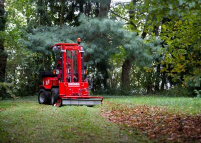 The all-terrain, maneuverable Uni-Truck with the mounted flail mower can reach even hard-to-reach areas and is designed for mulching and mowing extensively used areas in landscaping and green space maintenance. It is also ideally suited for higher grass populations, scrub, reeds and dense weed growth. The pendulum-mounted special flail blades also impress with their insensitivity to foreign body impact.