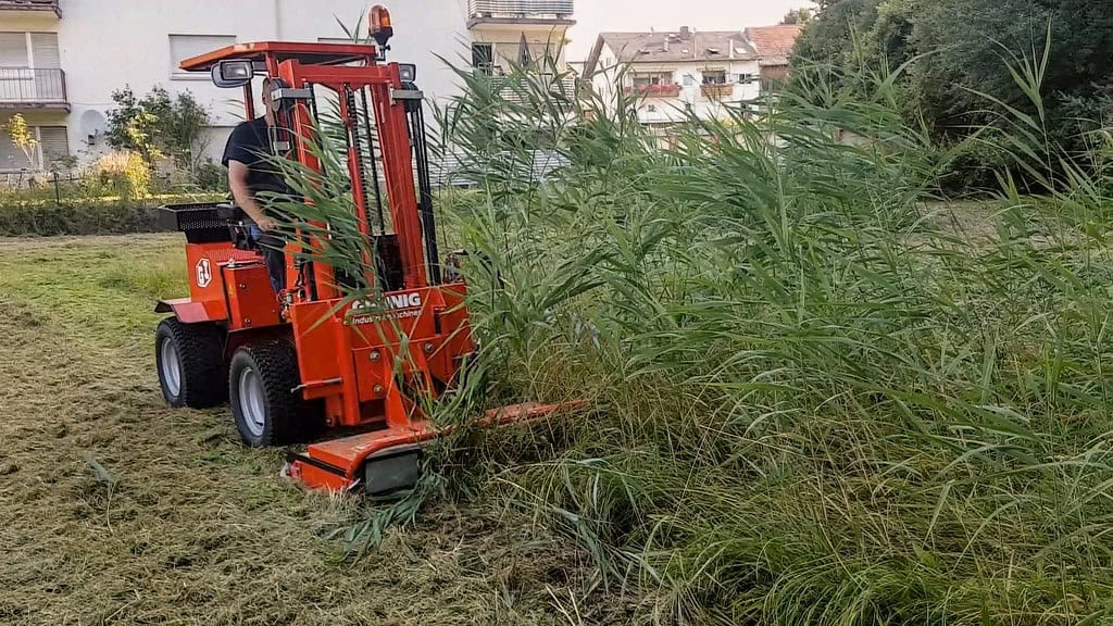 Erreicht selbst schwer zugängliche Stellen und ist zum Mulchen und Mähen von extensiv genutzten Flächen im Bereich GaLa-Bau und Grünflächenpflege konzipiert.